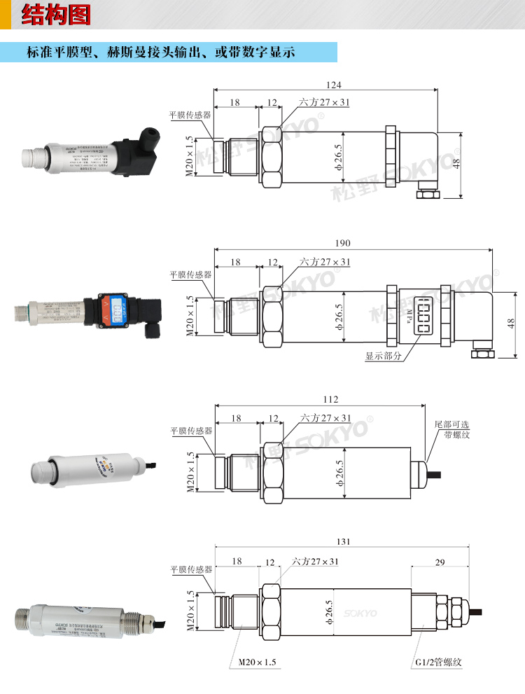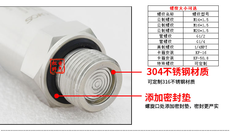 3、確定螺紋接口:常用壓力接口為M20X1.5,如果在特殊場(chǎng)合下使用應(yīng)考慮防爆以及防護(hù)等級(jí)。