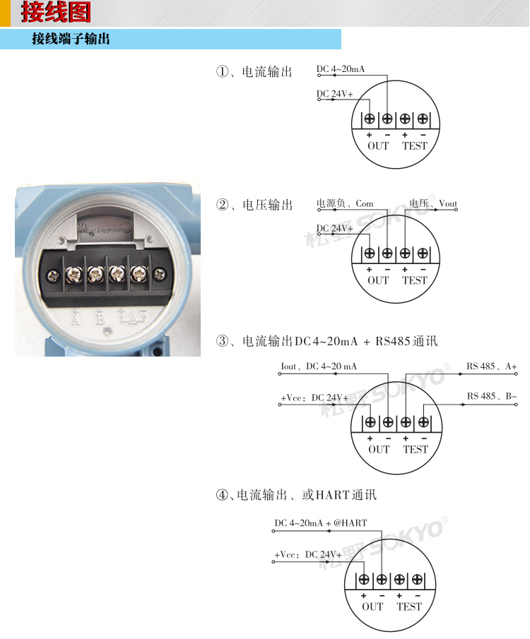 3、多種輸出方式選擇:兩線制電流4-20 mA、電壓0-5V、1-5V、0-10V、0.5V-4.5V輸出。