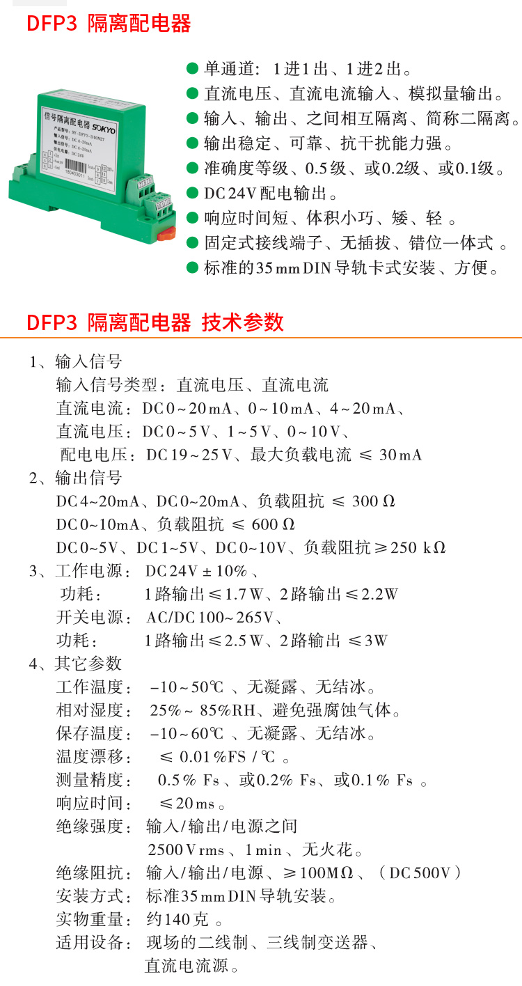 一、隔離配電器,DFP一進(jìn)一出配電器產(chǎn)品特點(diǎn)