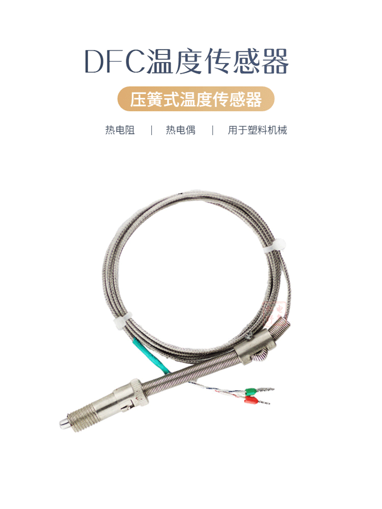DFC-Y 壓簧式 溫度傳感器 帶壓簧、環(huán)形卡扣、分離式結(jié)構(gòu),更換方便,適用于橡膠機(jī)械,塑料機(jī)械等。