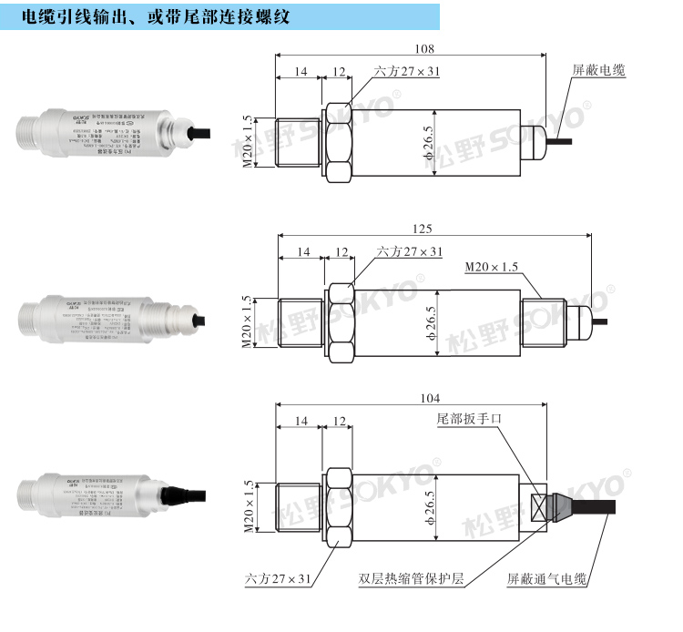 螺紋接口:M20*1.5,M16*1.5,M14*1.5,G1/2,G1/4,ZG1/4,1/4-18NPT(英制螺紋)