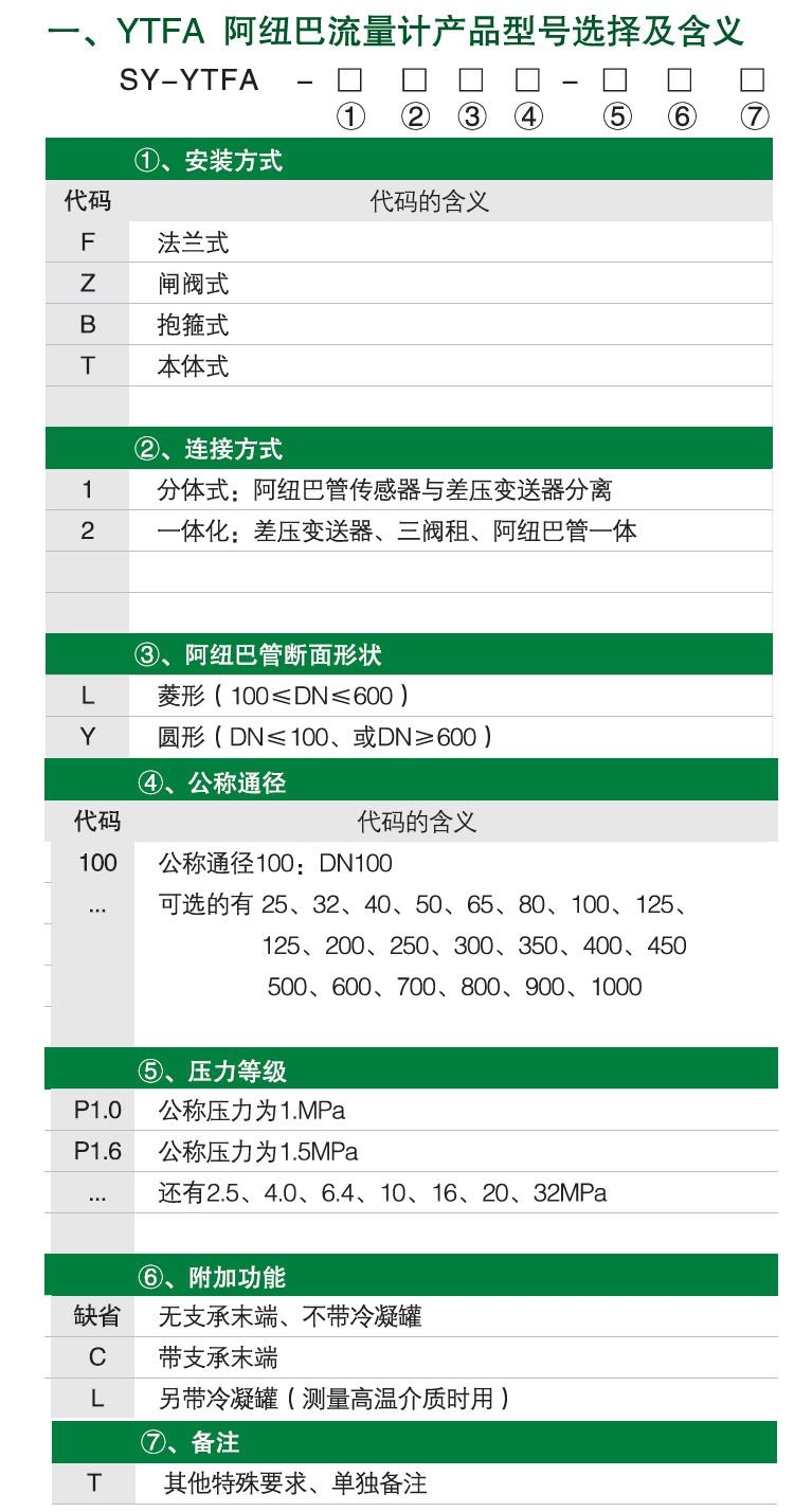 1、YTFA系列阿紐巴流量計(jì)是根據(jù)伯努利方程和流體連續(xù)方程原理,進(jìn)行管道流量測(cè)量的一種差壓式流量計(jì)。