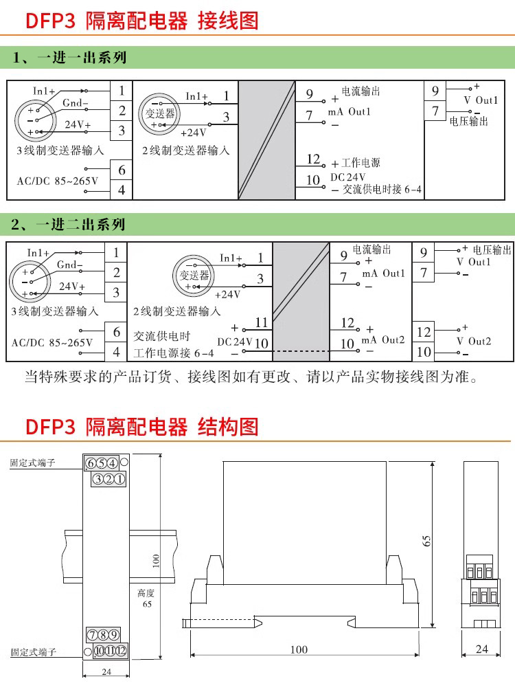 二、隔離配電器,DFP一進(jìn)一出配電器常用型號(hào)