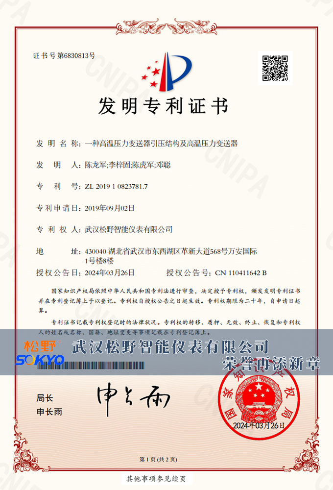 專利產(chǎn)品,臺灣技術(shù),武漢松野智能儀表有限公司專業(yè)生產(chǎn)防爆壓力變送器,壓力變送器廠家,抗變頻干擾能力強(qiáng),免費(fèi)熱線:400-027-0806.