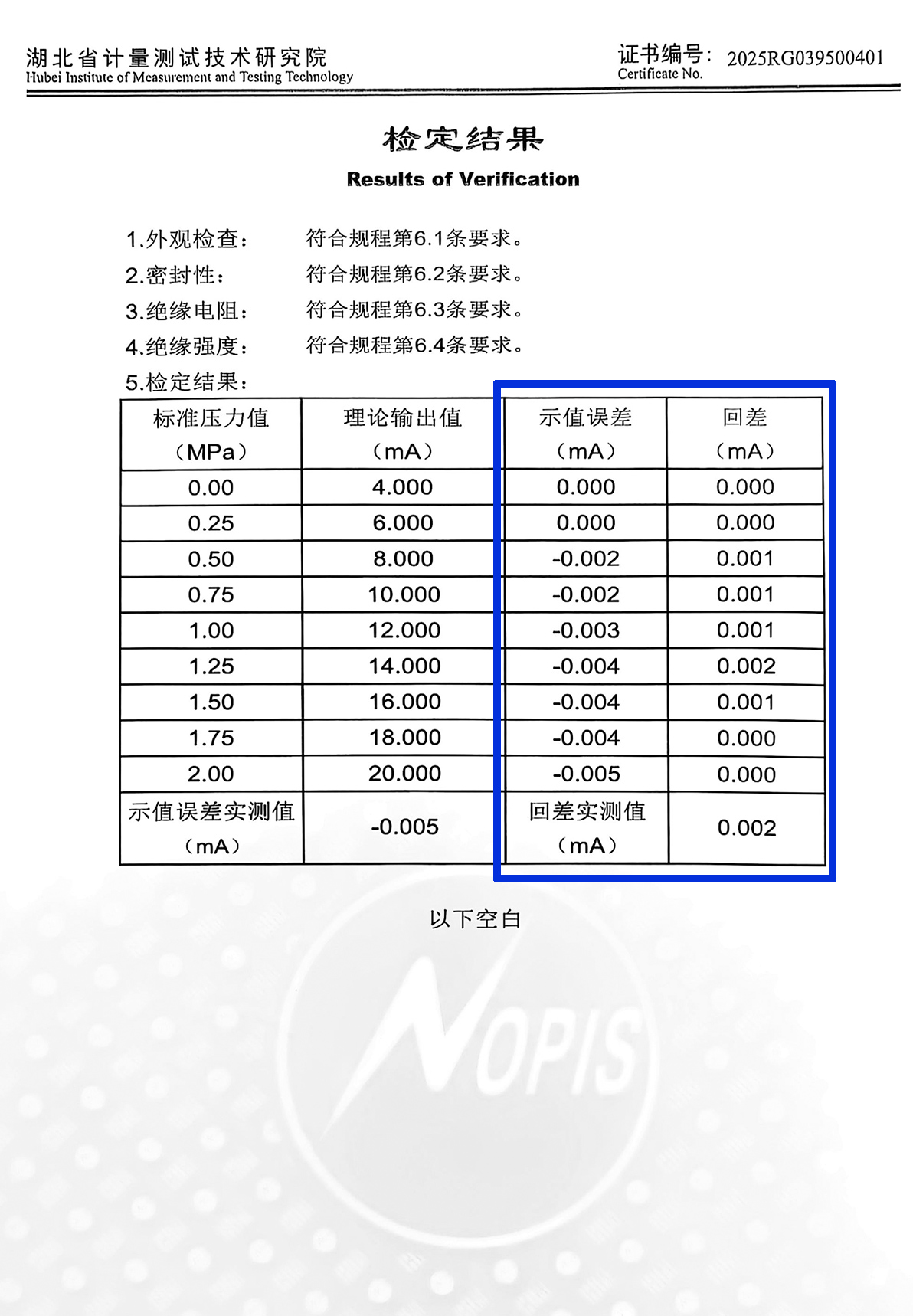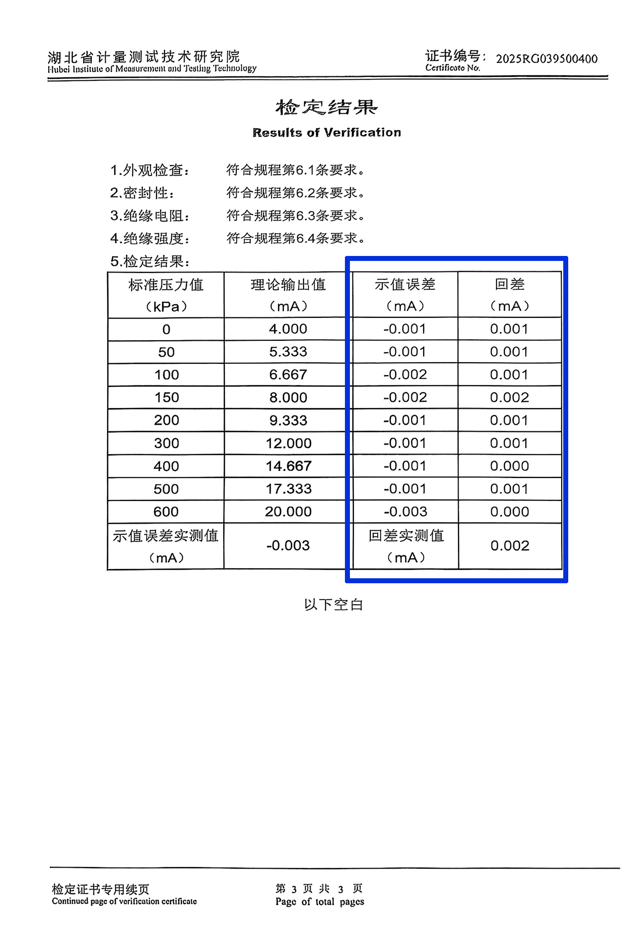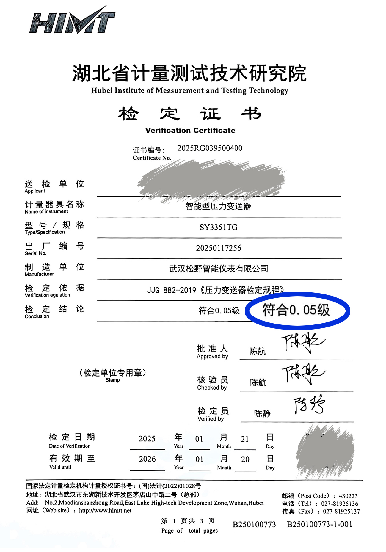 新年伊始,武漢松野智能儀表迎來(lái)技術(shù)新飛躍!我司自主研發(fā)的智能型壓力變送器,精度(準(zhǔn)確度)可以達(dá)到0.05級(jí)(0.05%FS),并經(jīng)過(guò)湖北省計(jì)量測(cè)試研究院的嚴(yán)格測(cè)試,且測(cè)量回差等級(jí)遠(yuǎn)超此標(biāo)準(zhǔn),這是繼0.1級(jí)高精度壓力變送器之后的又一次技術(shù)突破!此次成就,是對(duì)我們持續(xù)創(chuàng)新、精益求精的最好證明。在新的一年里,武漢松野將繼續(xù)秉持匠心精神,致力于技術(shù)革新,為客戶提供更優(yōu)質(zhì)的產(chǎn)品與服務(wù),共創(chuàng)輝煌未來(lái)!
