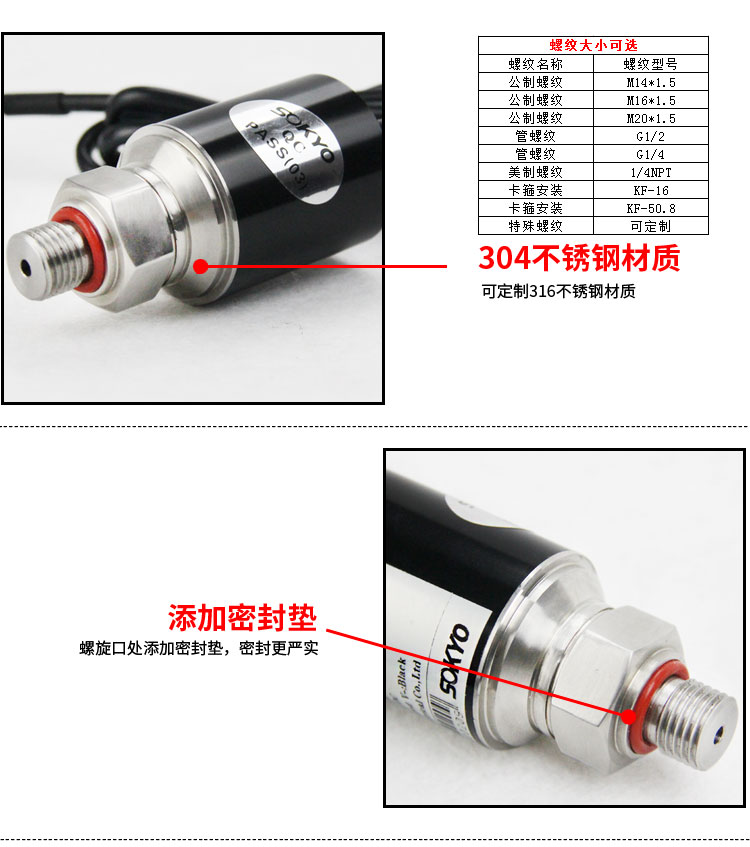 3、確定螺紋接口:常用壓力接口為M20X1.5,如果在特殊場合下使用應考慮防爆以及防護等級。