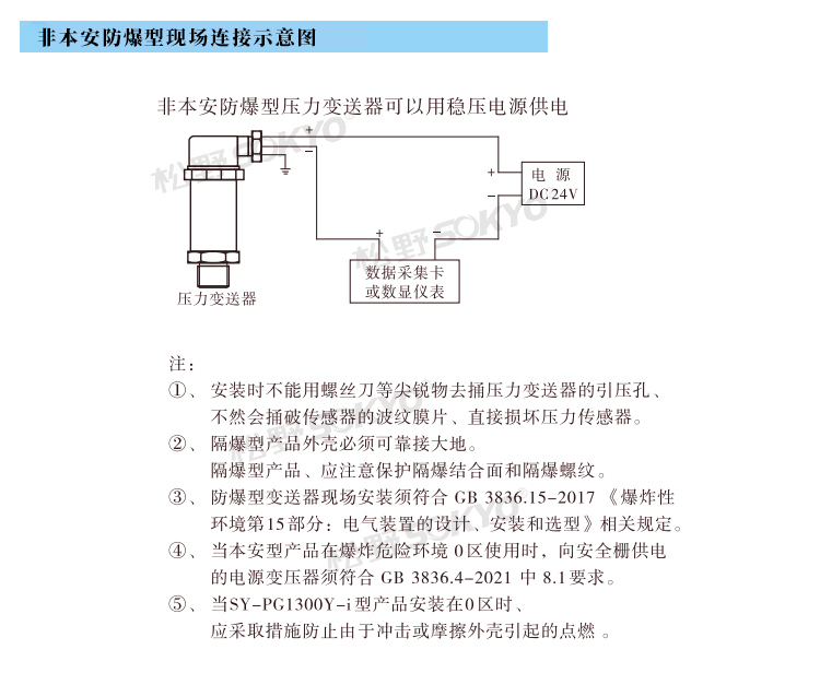 7.防爆型變送器現(xiàn)場(chǎng)安裝須符合GB3836.15-2000《爆炸性氣體環(huán)境電氣設(shè)備第15部分:
