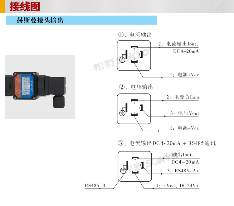 接線方式:標準電纜輸出、航空插頭輸出、赫斯曼接線頭輸出